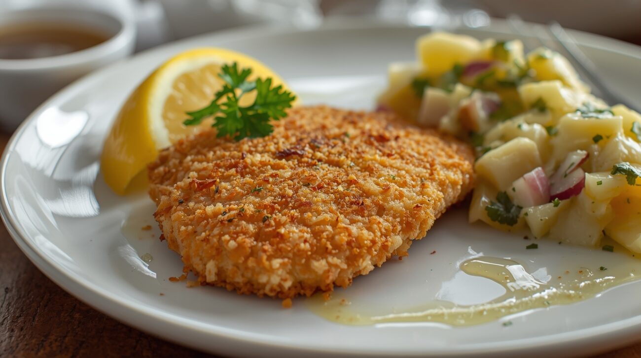 Knusprig-luftige Panade, saftiges Hirschfleisch und ein Spritzer Zitrone: Dieses Schnitzel verbindet traditionelles Handwerk mit feiner...