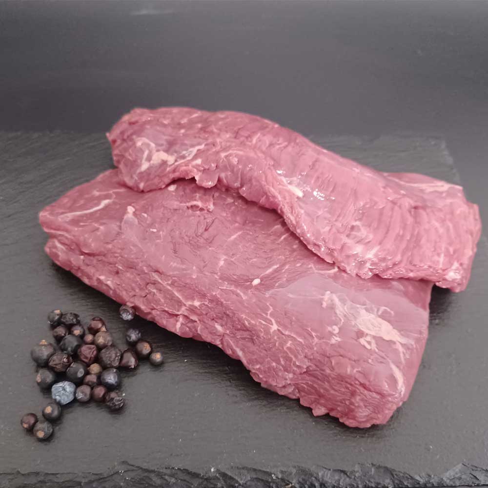 Zartes falsches Filet vom Angus-Rind – vielseitig, aromatisch und ideal zum Schmoren oder Braten. Perfekt für deftige Gulaschgerichte, Sauerbraten oder klassische Sonntagsbraten. Unser falsches Rinderfilet stammt aus regionaler Weidehaltung.