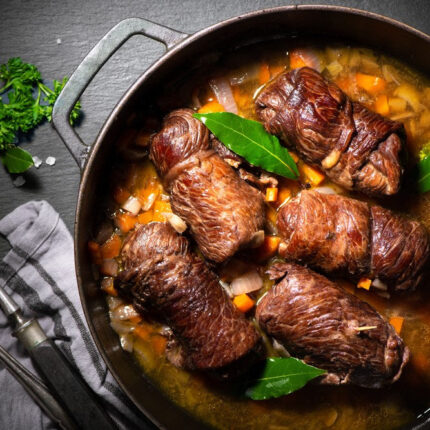Damwild-RouladenBesonders kräftiger Geschmack. Mager und cholesterinarm. Menge der Rouladen variiert je nach Größe! 500g sind etwa 3-4 Rouladen 700g sind